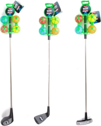 Izklaidējošs un drošs bērnu golfa komplekts mazajiem sportistiem, kuri vēlas atklāt golfa burvību. Ideāls spēlei dārzā un mājās. Komplektā ietilpst viena golfa nūja apm. 60 cm un 4 plastmasas bumbiņas. Nūjas izpildījums tiek piegādāts dažādos variantos atkarībā no noliktavas pieejamības.