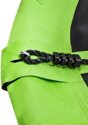 Komplektā ietilpst virvju gali ar metāla gredzeniem un karabīnēm, lai nodrošinātu vienkāršu un drošu iekarināšanu bez papildu detaļu iegādes.