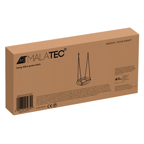 Montāža ir ātra un vienkārša – virves ir aprīkotas ar metāla gredzeniem drošai iekarināšanai. Regulējams augstums līdz 170 cm ļauj pielāgot šūpoles gan mazākiem, gan lielākiem bērniem un atvieglo drošu uzkāpšanu un nokāpšanu. Nestspēja 150 kg un pītas virves 10 mm nodrošina augstu drošības līmeni.