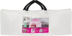 Komplektā ir LED vates bumbiņu virtene siltā baltā krāsā (barošana ar 2× AA – nav iekļautas), kas radīs omulīgu gaismu bez kontaktligzdas nepieciešamības. Telts tiek piegādāta pārnēsājamā somā ar rokturi, un, pateicoties pārdomātajai konstrukcijai, to var salikt vai izjaukt dažu minūšu laikā.