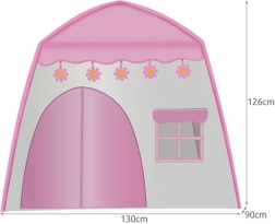 Stilīga bērnu telts rozā–baltā kombinācijā piedāvā trīs sietiņa logus un ērtu ieeju, tāpēc tā ir ideāla lasīšanai, spēlēm un mīļāko rotaļlietu kārtošanai. Pateicoties kompaktajiem izmēriem 126 × 130 × 90 cm, tā lieliski der bērnistabā un to var paņemt līdzi arī uz vasarnīcu vai terasi.