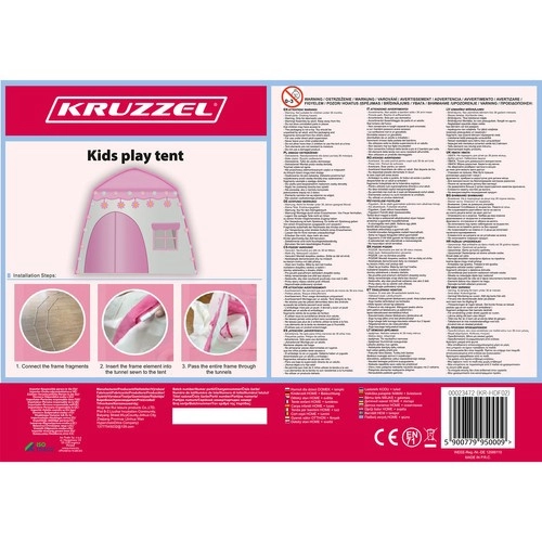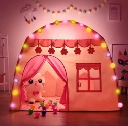 Mīlīga bērnu telts mājiņas formā pārvērtīs jebkuru istabu burvīgā patvēruma vietā spēlēm un atpūtai. Pateicoties vieglajai konstrukcijai un ērtajam somas pārvalkam, to ir viegli pārnēsāt un ātri salikt. Komplektā ir LED vates bumbiņu virtene, kas darbojas ar baterijām, ar 20 gaismiņām un 2,8 m garumu, kas rada mājīgu atmosfēru. Izturīgs materiāls, stabila rame un grīda nodrošina drošību spēļu laikā gan mājās, gan terasē.