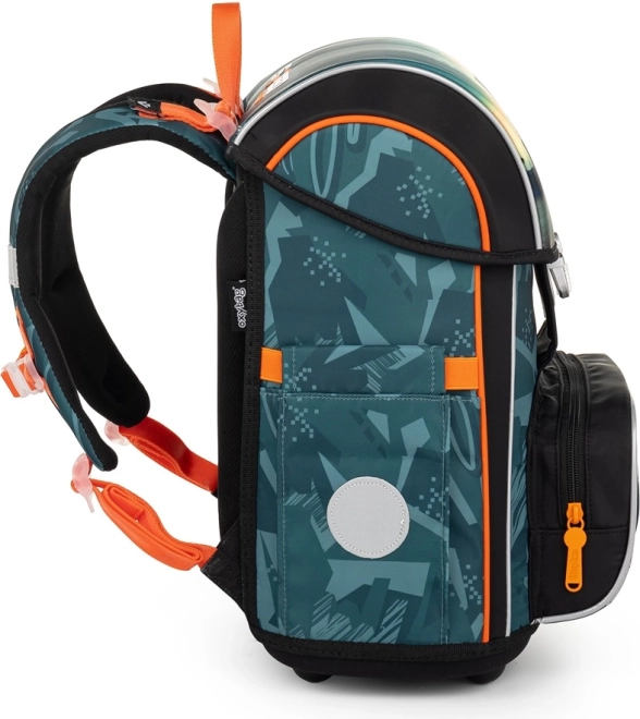 Skolas komplekts ar sacīkšu auto motīvu ir izstrādāts bērniem jau no pirmās klases. Tajā ietilpst skolas mugursoma ar anatomiski veidotu muguras daļu, kas nodrošina ērtu nēsāšanu, pateicoties mīkstinātām un elpojošām plecu lencēm. Mugursoma ir ne tikai viegla, bet arī droša, pateicoties atstarojošajiem elementiem. Priekšējā kabata ir ideāli piemērota pusdienu kastītei, bet sānu kabatas piedāvā pietiekami daudz vietas citām skolas lietām.