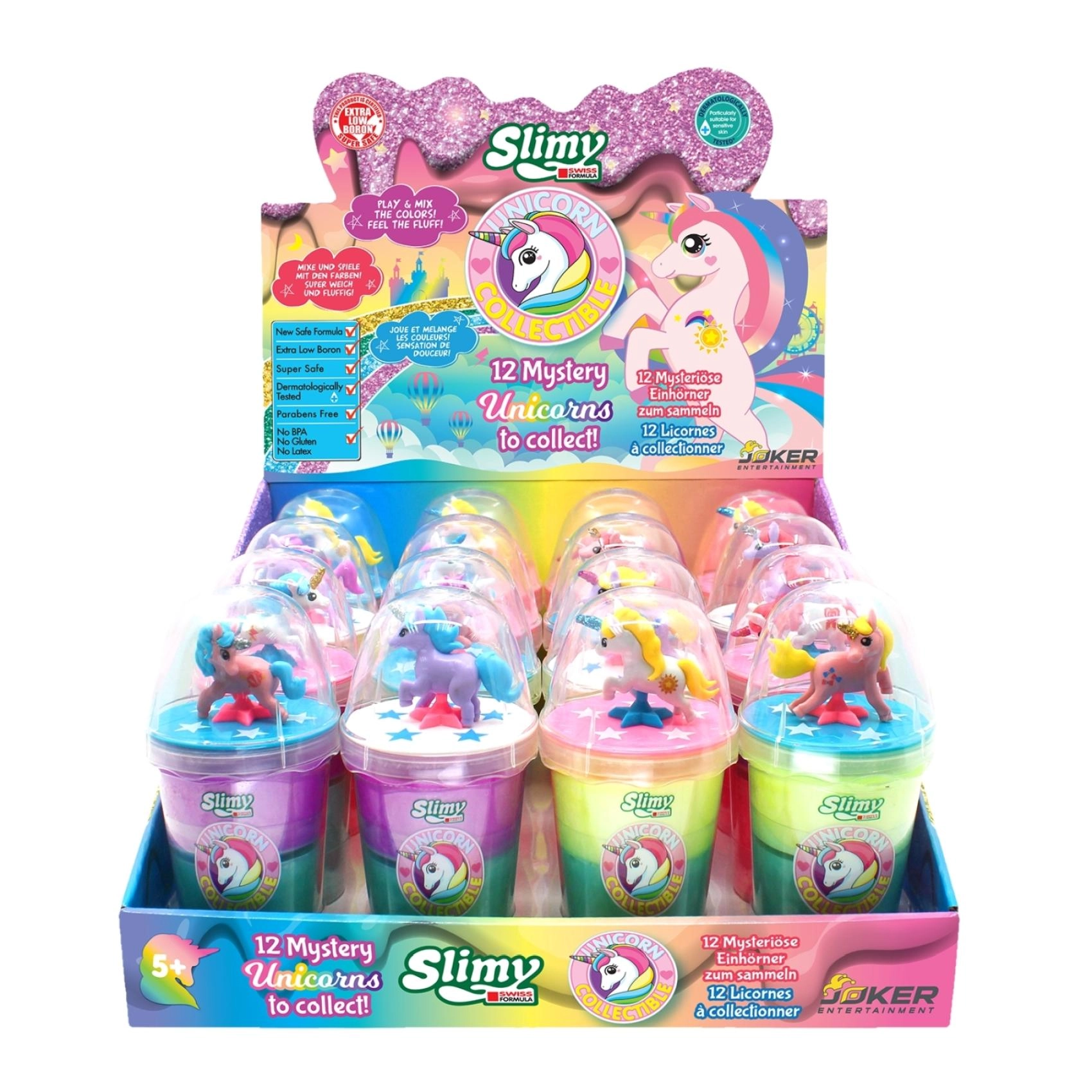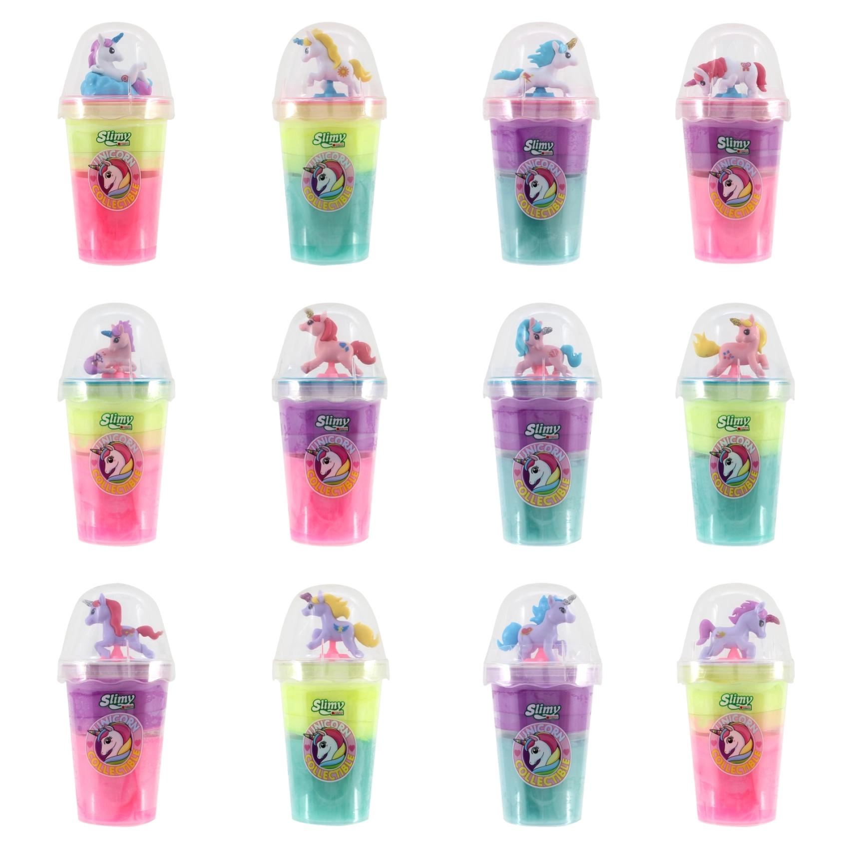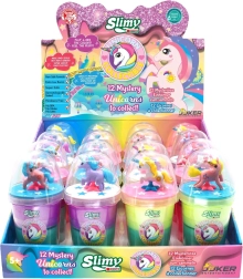 Aizraujiet fantāziju ar oriģinālajām Slimy gļotām, kas apvieno iecienīto spiešanu, stiepšanu un veidošanu ar mīlīgām, košām vienradžu figūriņām. Katrs trauciņš piedāvā atšķirīgu krāsu kombināciju un stabilu statīvu, lai bērni varētu figūriņu izstādīt vai iesaistīt spēlē.
