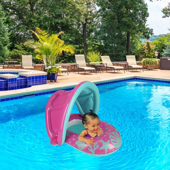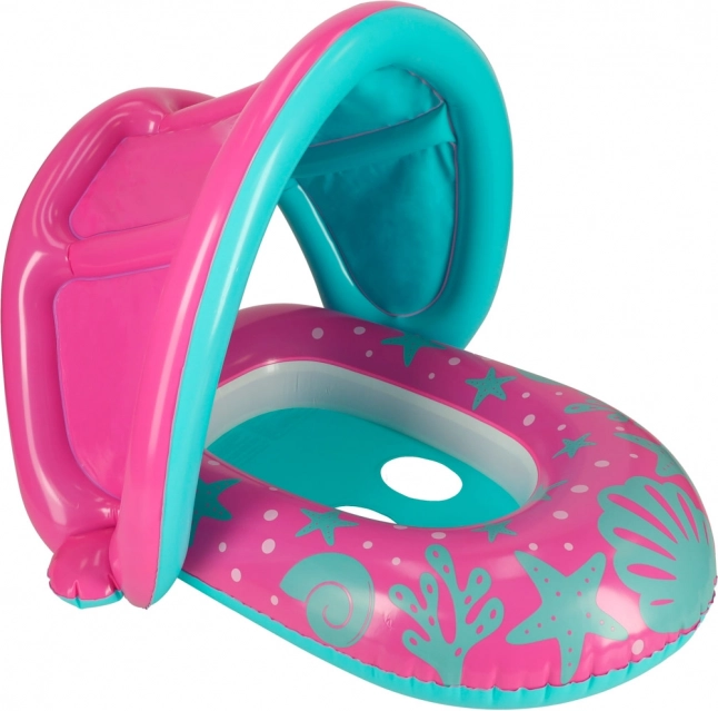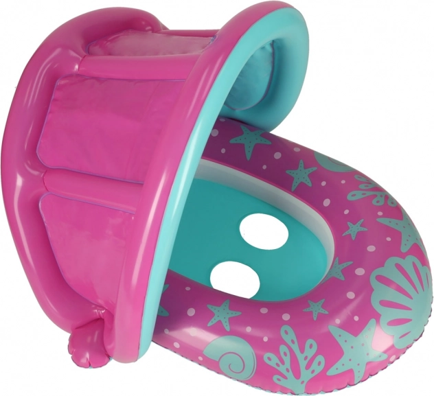 Rozā–zilais bērnu peldēšanas sēdeklis ar jumtiņu ir lieliska izvēle mazuļiem, kuri sāk iepazīties ar ūdeni. Piepūšamais jumtiņš nodrošina ēnu un palīdz aizsargāt jutīgo ādu no saules, turklāt to var viegli noņemt, kad tas nav nepieciešams. Kāju atveres un veidotais sēdeklis sniedz drošību un komfortu, lai bērns varētu droši izbaudīt ūdens priekus.