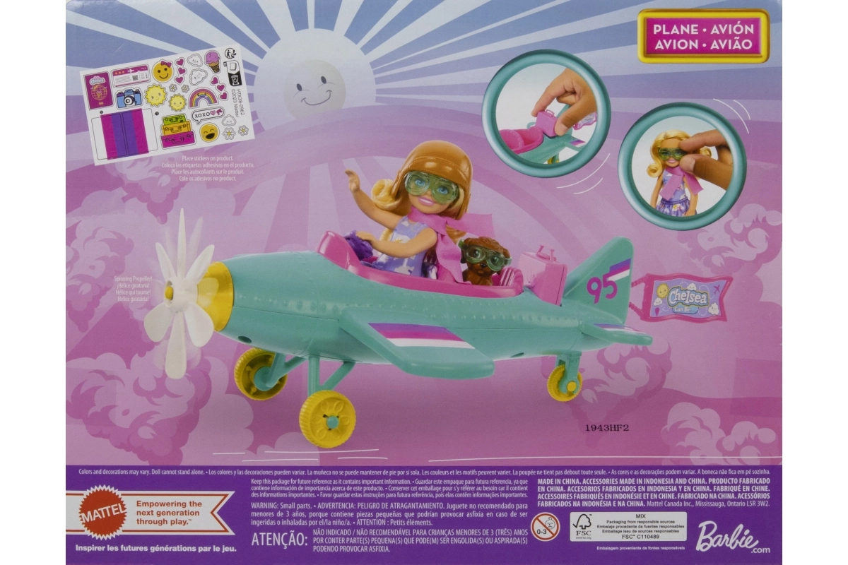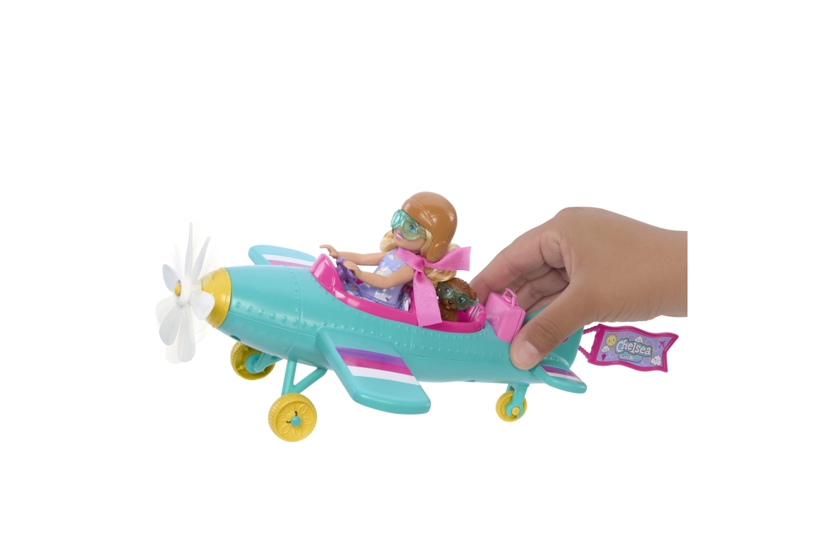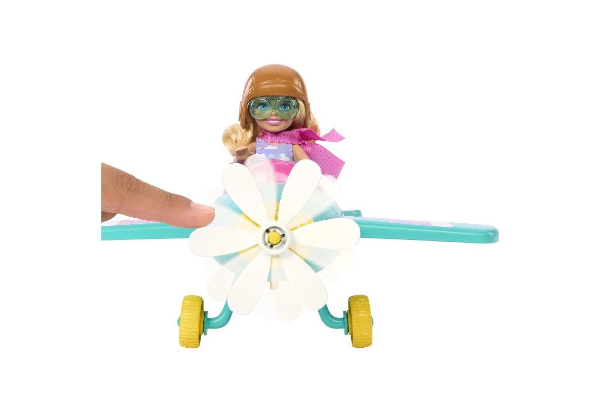 Ar Barbie Chelsea Can Be komplektu bērni var sapņot lielus sapņus. Mazā pilote CHELSEA sēžas krāsainajā divvietīgajā lidmašīnā, bet viņas uzticamais kucēns dodas uz klāja. Rotējošais zieda propellers, brīvi ripinošie riteņi un iespēja piestiprināt Chelsea karodziņu pārvērš katru braucienu lidojumā, kas pilns iztēles.