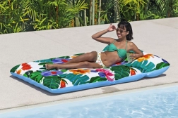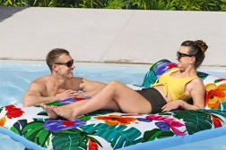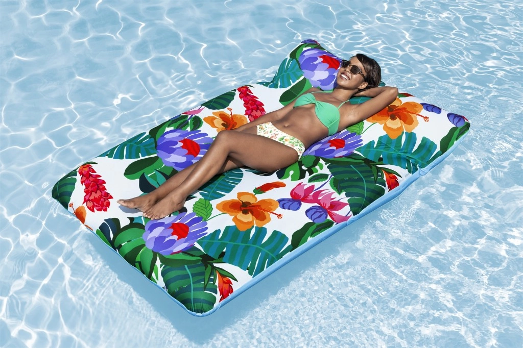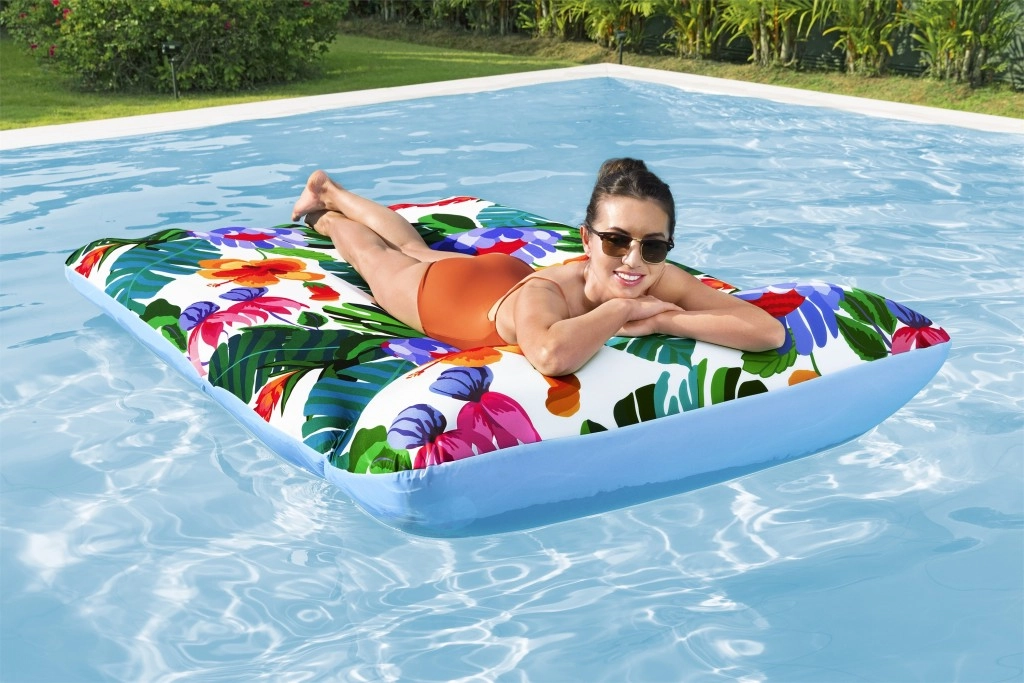 Izbaudiet bezrūpīgu atpūtu uz baseina vai ezera virsmas. Šis plašais uzpūšamais matracis ar izmēriem 200 × 123 cm apvieno stabilu peldspēju ar izcilu komfortu. Patīkamo tekstila pārvalku var viegli noņemt un izmazgāt veļasmašīnā, lai jūsu matracis vienmēr būtu tīrs un gatavs nākamajai peldēšanai.