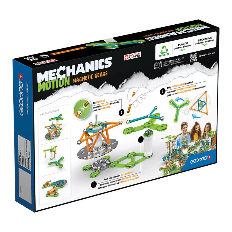 GEOMAG Mechanics Motion Magnetic Gears bērniem piedāvā intuitīvu veidu, kā izprast rotācijas kustību, magnētiskos spēkus un pārnesumu mehānismus. Ar magnētisko stieņu, lodīšu un zoboto elementu palīdzību viegli radīsiet dinamiskas konstrukcijas, kas patiesi kustas. Spēle veicina eksperimentēšanu, problēmu risināšanu un sistēmisku domāšanu.