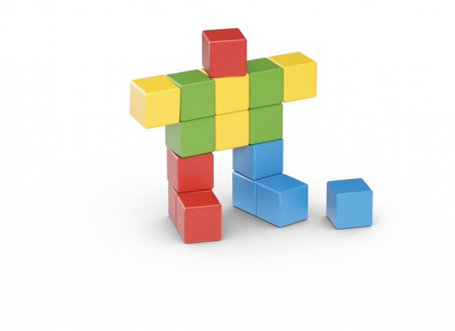 No 16 klučiem var salikt vienkāršas figūriņas, dzīvniekus un fantastiskas formas. Spēle dabiski attīsta iztēli un loģisko domāšanu.