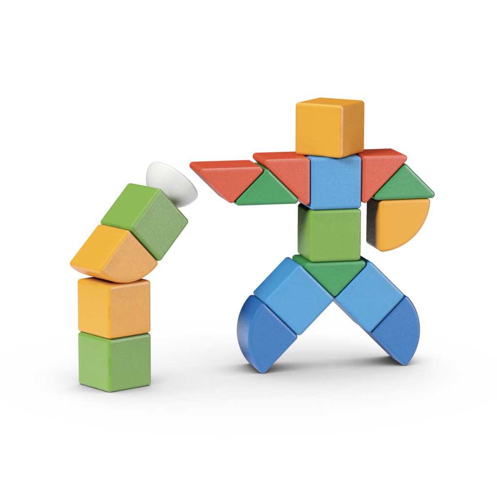 Spēcīgi, bet droši magnēti ļauj viegli savienot klucīšus un formas. Bērni ātri apgūst principu un var veidot stabilas konstrukcijas bez vilšanās.