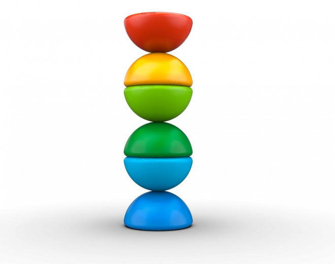 Magnētiskās puslodes Geomag Magicube Stacking ir ideālas pirmajām torņu un vienkāršu formu būvēm. Vienkāršā savienošana ar magnētiem motivē bērnus atklāt, šķirot krāsas un attīstīt sīko motoriku, kā arī telpisko iztēli. Drošais izpildījums ir pielāgots mazām bērnu rociņām.