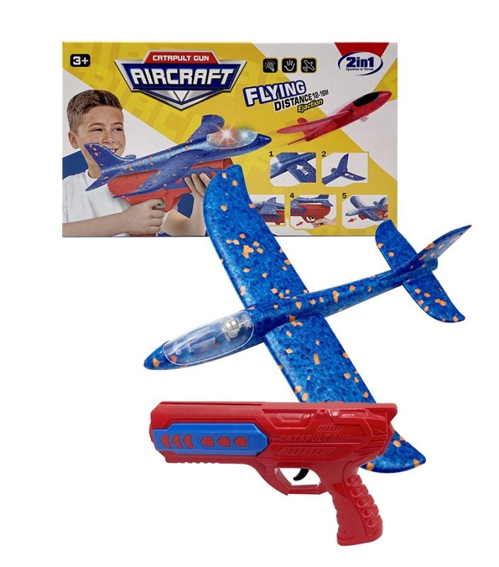 Izbaudiet daudz jautrības ar bērnu komplektu – putuplasta lidmašīnu ar izšaujamo pistoli. Viegls un izturīgs materiāls ir drošs bērniem, aerodinamiskā forma nodrošina stabilu lidojumu, bet iebūvētā gaisma izgaismo katru startu. Lidojuma distance līdz 16 m, viegla vadība un lieliska āra izklaide gan maziem, gan lieliem.