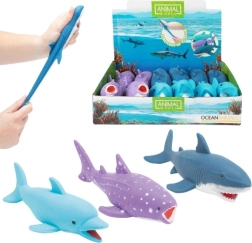 Šī sensorā antistresa rotaļlieta jūras radību formā (delfīns, haizivs un citas) ir izgatavota no mīksta, izturīga silikona un pildīta ar smalkām smiltīm. Tāpēc to ir patīkami spiest, viegli stiept un tā labi notur jaunas formas – gan saspiežot, gan ripinot pa galdu vai viegli metot.