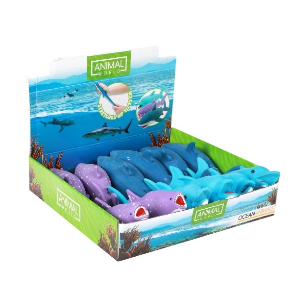 Iepakojumā atradīsiet dažādus jūras dzīvniekus, piemēram, delfīnu un haizivi, pievilcīgās krāsās vēl lielākai jautrībai.