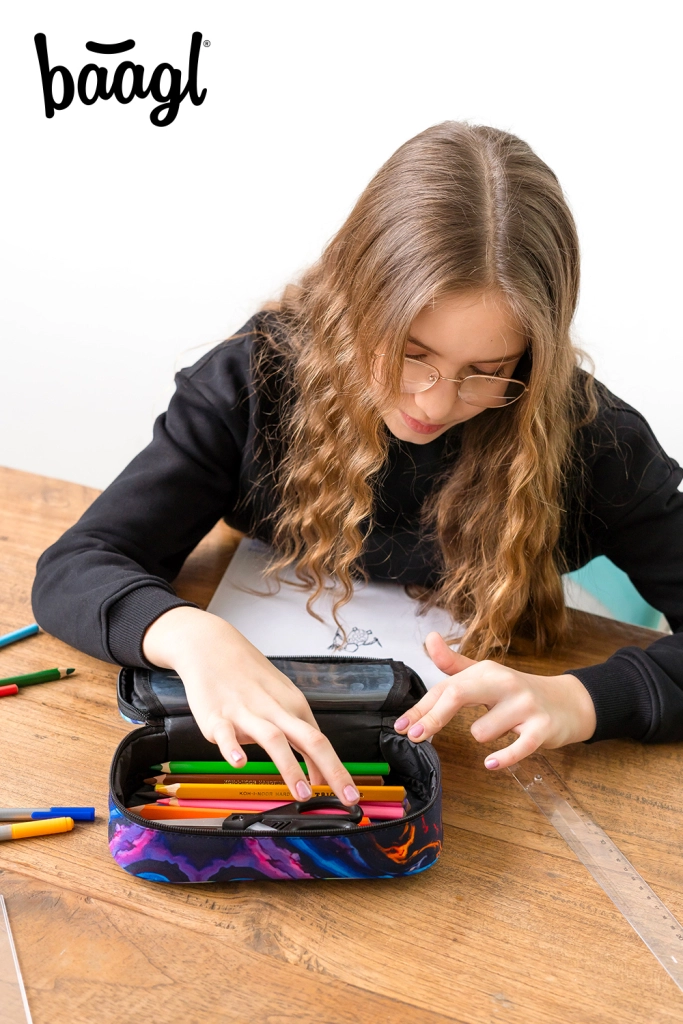 Šis izturīgais skolas penālis ir ideāls palīgs ikvienam skolēnam. Pateicoties izvelkamajai iekšējai pārstarpei, tas nodrošina ērtu piekļuvi visām skolas piederībām.