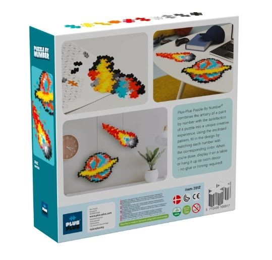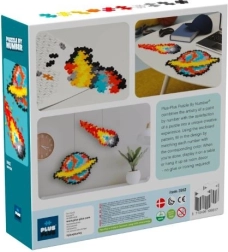 Komplekts Plus-Plus Puzle pēc skaitļiem – Kosmoss piedāvā gudru veidu, kā apvienot radošu būvēšanu ar mācīšanos. Bērni pēc pievienotās šablona pieskaņo krāsas skaitļiem un soli pa solim saliek iespaidīgu kosmosa mozaīku ar planētu un komētu. Gatavais darbs lieliski noder kā istabas dekors.