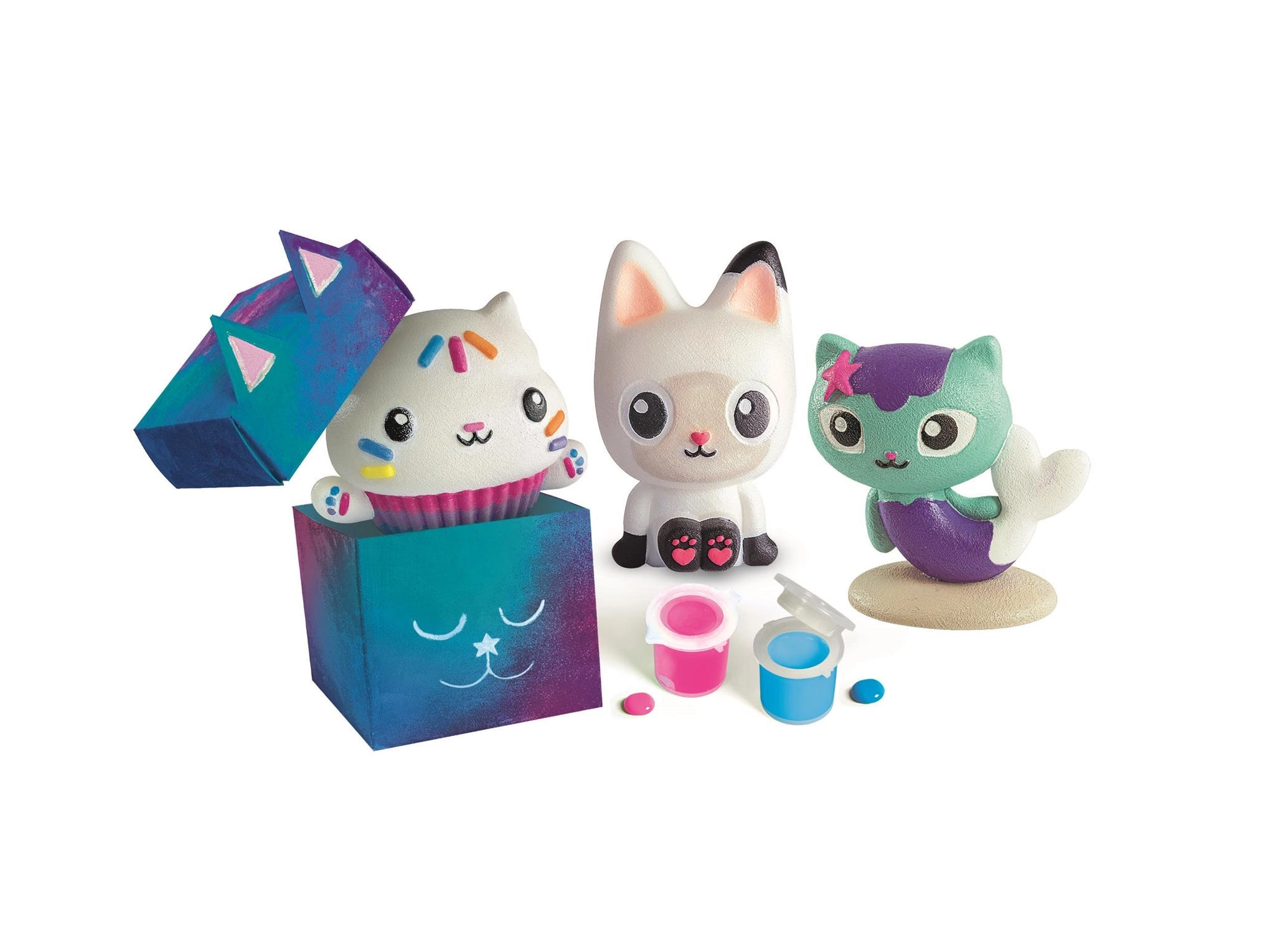 Atklājiet radošo komplektu mazajiem meistariem, kas iedvesmots no seriāla Gabi burvju namiņš. Ar augstas kvalitātes ģipsi izveidosiet 3 detalizētas figūriņas, kuras pēc tam izkrāsosiet ar temperām. Komplekts attīsta iztēli, sīko motoriku un mākslinieciskās prasmes, piedāvājot daudz stundu jautras nodarbes.