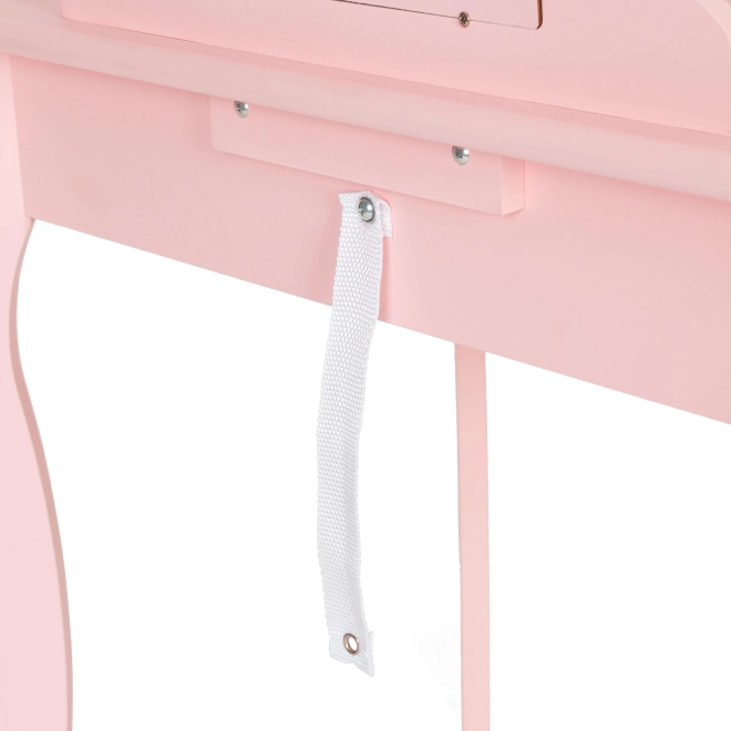Burvīgs rozā tualetes galds mazām dāmām izveidos viņu pašu skaistumkopšanas stūrīti bērnu istabā. Lielā darba virsma un atvilktne dārgumiem, rotām un aksesuāriem nodrošina pārskatāmu kārtību, savukārt lielais spogulis ar glītu sirsniņu piešķir komplektam īpašu valdzinājumu.