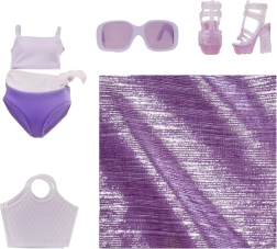 Piederumos ietilpst violets apģērbs, saulesbrilles, kurpes un maza somiņa, kas ļauj veidot dažādas modes variācijas un tēmas, piemēram, pludmale vai vasara.