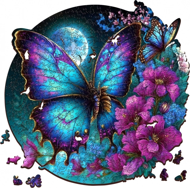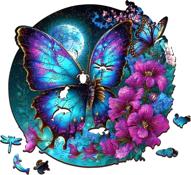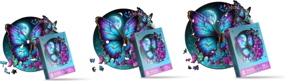 Šī apaļā koka puzle ar iespaidīgu zilgani violetā tauriņa motīvu piedāvā izteiksmīgas, asas krāsas, pateicoties UV digitālajai drukai un rūpīgai meistarībai. Katrs gabaliņš ir unikāls, gluds pieskārienam un precīzi pieguļ, nodrošinot patīkamu un plūstošu salikšanu. Ar diametru 42 cm gatavā puzle kļūs par oriģinālu sienas dekoru.