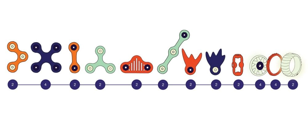 Katra četr-lapu formas detaļa ļauj veidot 2D un 3D konstrukcijas uz jebkuras magnētiskas virsmas. Iekļauta ideju brošūra un piekļuve video ar padomiem un trikiem pakalpojumā YouTube. Lieliski bērniem no 6 gadu vecuma, vecākiem, skolām un bērnudārziem – izklaidei, koncentrēšanās veicināšanai un nomierināšanai.