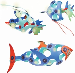 Veidojiet medūzas, zivis un vaļus – daļa detaļu fosforiscē, tāpēc jūsu veidojumi atdzīvosies arī tumsā un veicinās iztēles spēli.