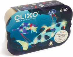 CLIXO Ocean Creatures ir gudrs magnētiskais konstruktors bērniem no 6 gadiem, kas apvieno spēli un mācīšanos. Pateicoties patentētajam magnētu mehānismam ar 360° rotāciju un fiksāciju 24 pozīcijās, veidojumi ir stabili un droši. Komplektā ir 24 detaļas 9 formās (tostarp taustekļi un spuras) 4 krāsās, no kurām daļa spīd tumsā – ideāli jūras tematikai un radošām būvēm.