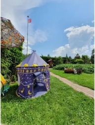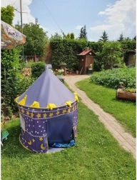 Burvīga bērnu telts pils formā pārvērtīs jebkuru istabu vai dārzu par vietu pilnu fantāzijas. Pateicoties vieglajai konstrukcijai un praktiskajam maciņam tā ir viegli pārnēsājama, saliekama aptuveni 5 minūtēs un piemērota spēlēm telpās un ārā. Izturīgs poliesters, stabils rāmis no PA un stikla šķiedras, tīklota logi un durvis ar lipekļa aizdari nodrošina drošu un ērtu vidi bērniem.