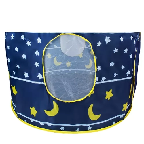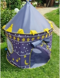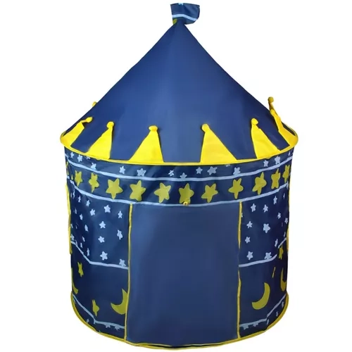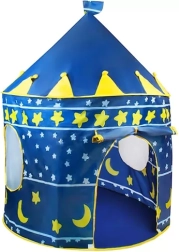 Bērnu rotaļu telts zilas pils formā veicina radošas spēles un patstāvību. Stilīgs nakts debess apdrukas dizains ar zvaigznēm un mēnešiem piesaista uzmanību un rada omulīgu stūrīti lasīšanai, spēlēm un atpūtai. Konstrukcija ir viegla, tomēr stabila, tāpēc bērni var droši izklaidēties.