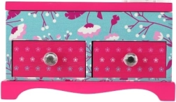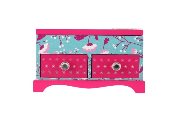 Lādītes virsmu rotā smalki ziedu un putnu motīvi rozā un tirkīzzilā kombinācijā, kas lieliski papildinās jebkuru bērnu istabu. Pateicoties izturīgajam koka izpildījumam un ērtajiem rokturiem, bērniem ir ērti ar to rīkoties. Nav rotaļlieta – piemērota kā dekoratīvs un glabāšanas priekšmets.