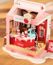 Atklājiet mini pasaules burvību ar miniatūro namiņu Piens bārs Strawberry. Šis Robotime radošais komplekts iepriecinās ar reālistiskām detaļām, rotaļīgu dizainu un patīkamu LED apgaismojumu. Montāža sagādās prieku, bet rezultātā iegūsiet glītu dekoru plauktam vai darba galdam.