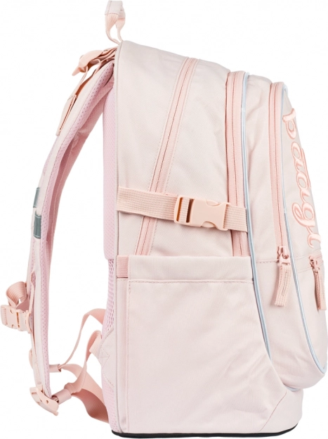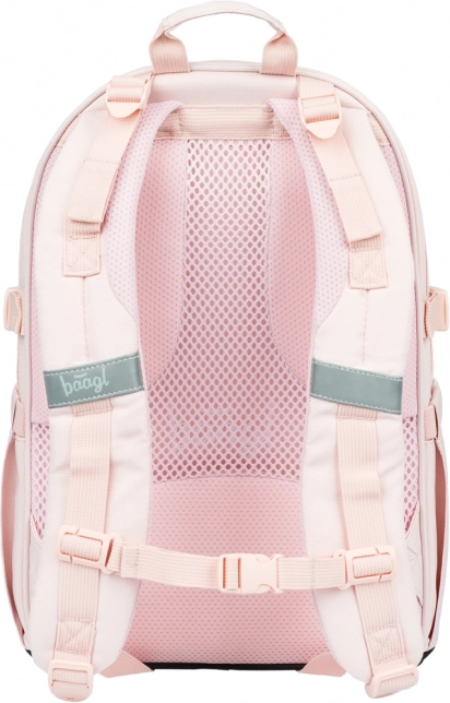 BAAGL Core Creamy ir stilīga un funkcionāla skolas mugursoma ar īpaši zemu svaru – 900 g – un 25 l tilpumu. Trīs atsevišķi aizveramas kameras ar organizētāju un polsterēta kabata droši ievietos klēpjdatoru vai planšeti līdz 15", klades un skolas piederumus. Sānu kabatas no izturīga materiāla ir ideāli piemērotas dzeršanas pudeles ievietošanai.