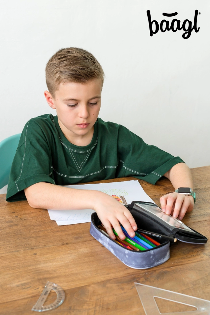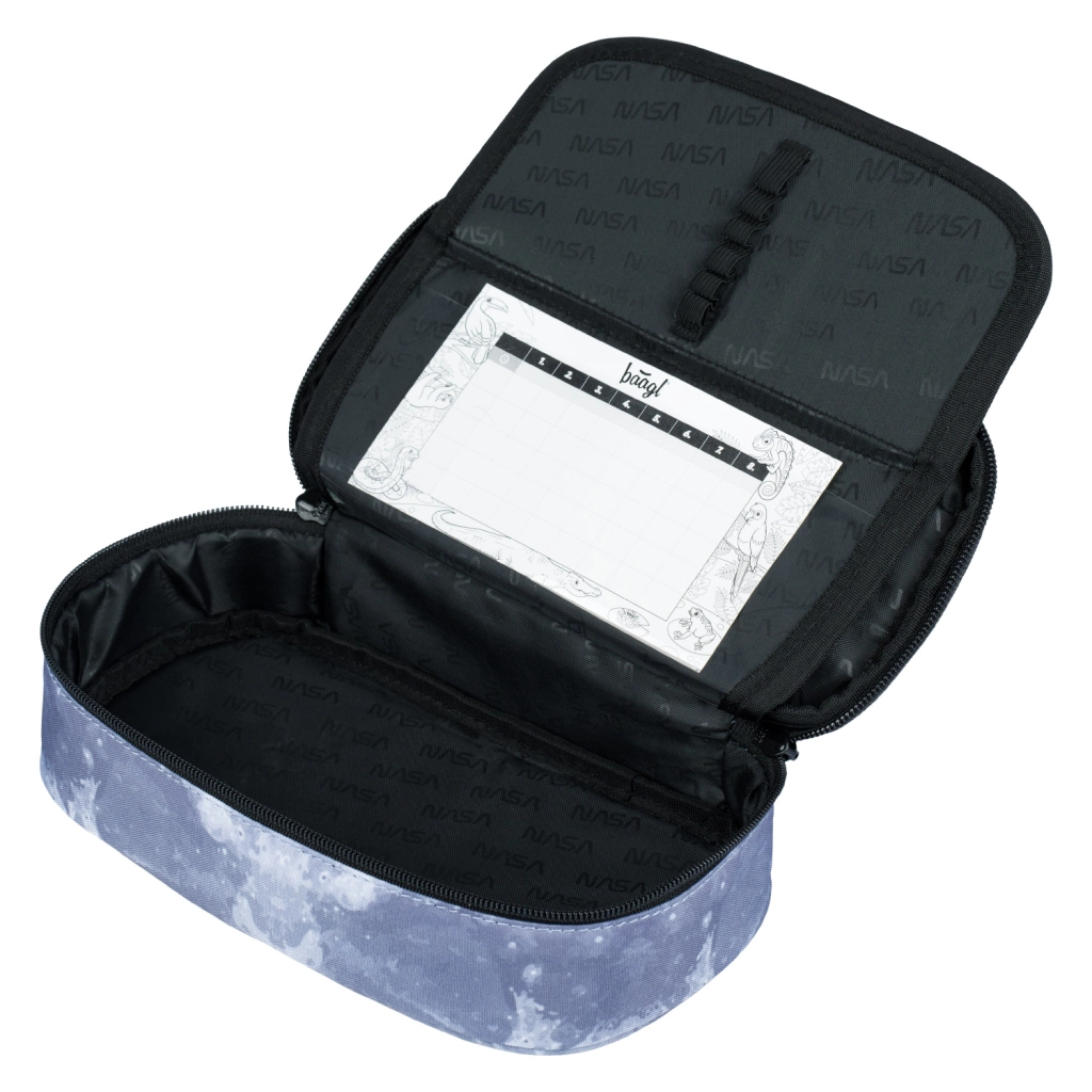 Praktisks un izturīgs skolas penālis BAAGL ar NASA motīvu piedāvā pārskatāmu rakstāmpiederumu glabāšanu, pateicoties atlokāmai starpsienai, iekšējai kabatai ar rāvējslēdzi un kabatai stundu sarakstam. Izgatavots no pārstrādāta materiāla un aprīkots ar kvalitatīviem YKK rāvējslēdžiem. Bez pildījuma.