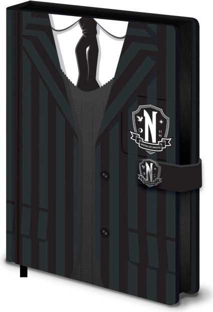Premium piezīmju bloks Wednesday ir ideāls sabiedrotais ikvienam Adamsu ģimenes fanam. Tā dizains ir ne tikai vizuāli pievilcīgs, bet arī praktisks, pateicoties mākslīgās ādas cietajam iesējumam, kas nodrošina ilgu kalpošanas laiku. Ar 120 līnijotām lapām tas ir ideāli piemērots piezīmēm, idejām vai ikdienas plāniem.