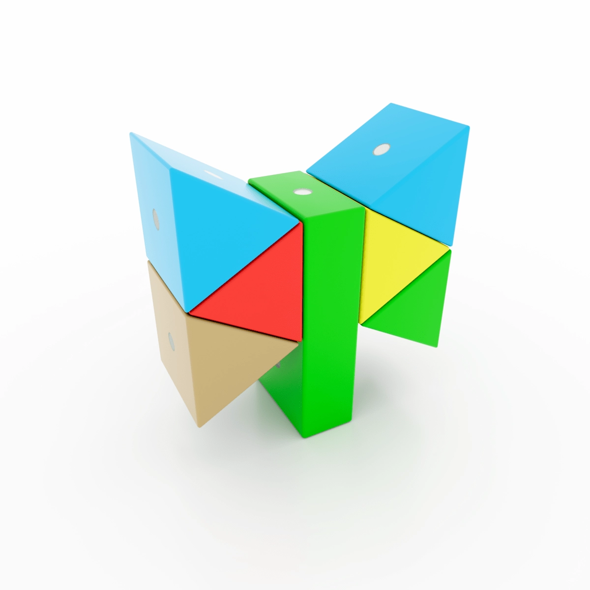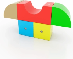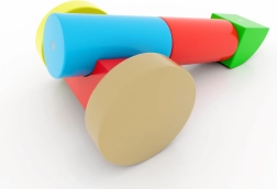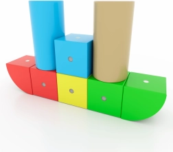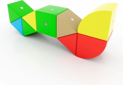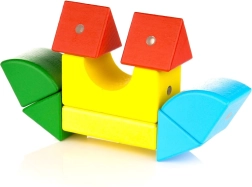 7 formas un 5 spilgtas krāsas iedvesmo veidot dzīvniekus, transportlīdzekļus un abstraktus modeļus. Brošūra ar pamācībām palīdz sākt un attīstīt fantāziju.