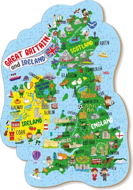 Atklājiet salu burvību ar izglītojošu puzli, kas aizraujošā veidā iepazīstina ar Lielbritānijas un Ziemeļīrijas ģeogrāfiju. Ideāli bērniem un pieaugušajiem, ar aprakstiem angļu valodā valodas treniņam un zināšanu paplašināšanai. Saliktas puzles izmērs ir aptuveni 65 × 45 cm, un tā satur 100 gabaliņu jautrai ģimenes izklaidei.