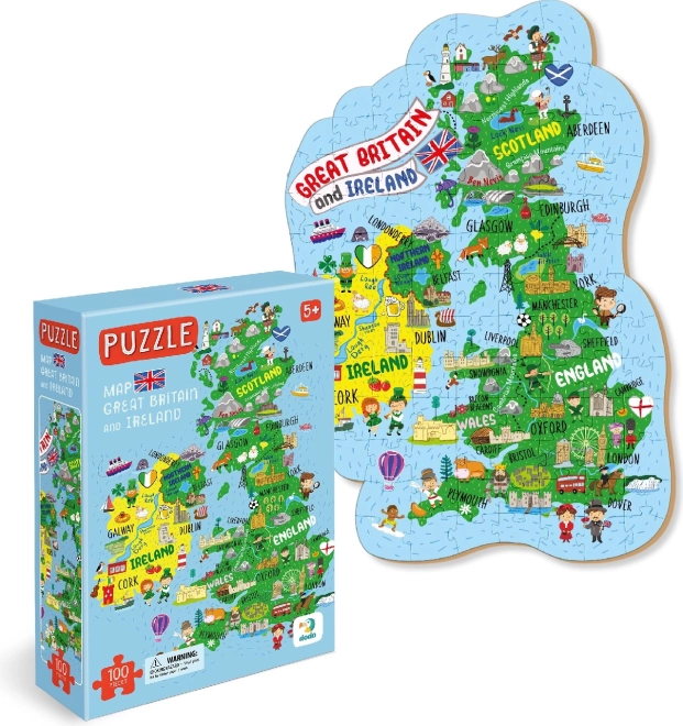Mācieties caur spēli ar DODO zīmola Lielbritānijas un Ziemeļīrijas kartes puzli. Pateicoties aprakstiem angļu valodā, bērni un pieaugušie var trenēt vārdu krājumu un vienlaikus apgūt galvaspilsētas, reģionus un ievērojamākos objektus. Saliktās puzles izmērs ap 65 × 45 cm nodrošina pietiekami daudz detaļu un pārskatāmu orientēšanos.
