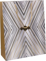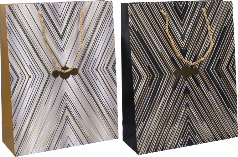 Šis vidēja izmēra dāvanu maisiņš piedāvā pietiekami daudz vietas jūsu dāvanām ar izmēriem 25x32x10 cm. Pieejams divās dažādās krāsu versijās, kas padara to par piemērotu izvēli jebkuram notikumam — dzimšanas dienām, svētkiem vai jubilejām.