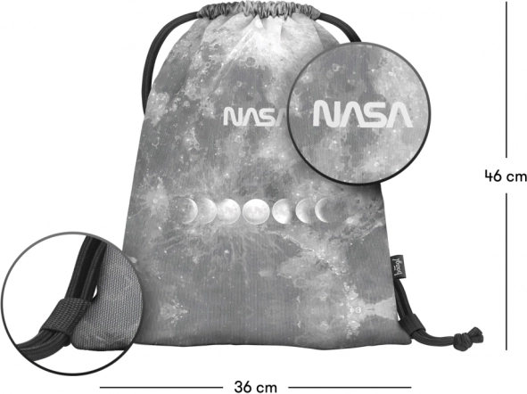 Izturīgs, mazgājams materiāls ar NASA motīvu. Savelkams ar stiprām auklām, kas ļauj to ērti nēsāt arī uz muguras – ideāli brīvā laika aktivitātēm.