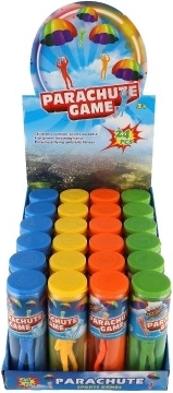 Caurspīdīgā cilindriskā caurule aizsargā rotaļlietu un atvieglo pārnēsāšanu. Ņem parašutistu līdzi jebkur – uz rotaļu laukumu, pie vecmāmiņas vai ceļojumā.