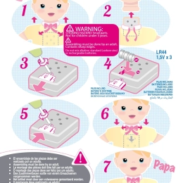 Nospiežot krūškurvi, lelle smejas un saka “mamma”, “tētis”, kas veicina empātijas un aprūpes rotaļas attīstību.