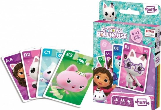 Izbaudiet ģimenes izklaidi ar kāršu spēli Shuffle Gabi Kaķu māja 4v1, kas apvieno četras klasiskas spēles vienā komplektā: kvartets, akcijas spēle, Melnais Pēteris un Snap. Spēle ir viegli saprotama arī pašiem mazākajiem, tai ir ātri raundi ap 10 minūtēm, un pateicoties kompaktajam iepakojumam tā ir lieliski piemērota ceļošanai.