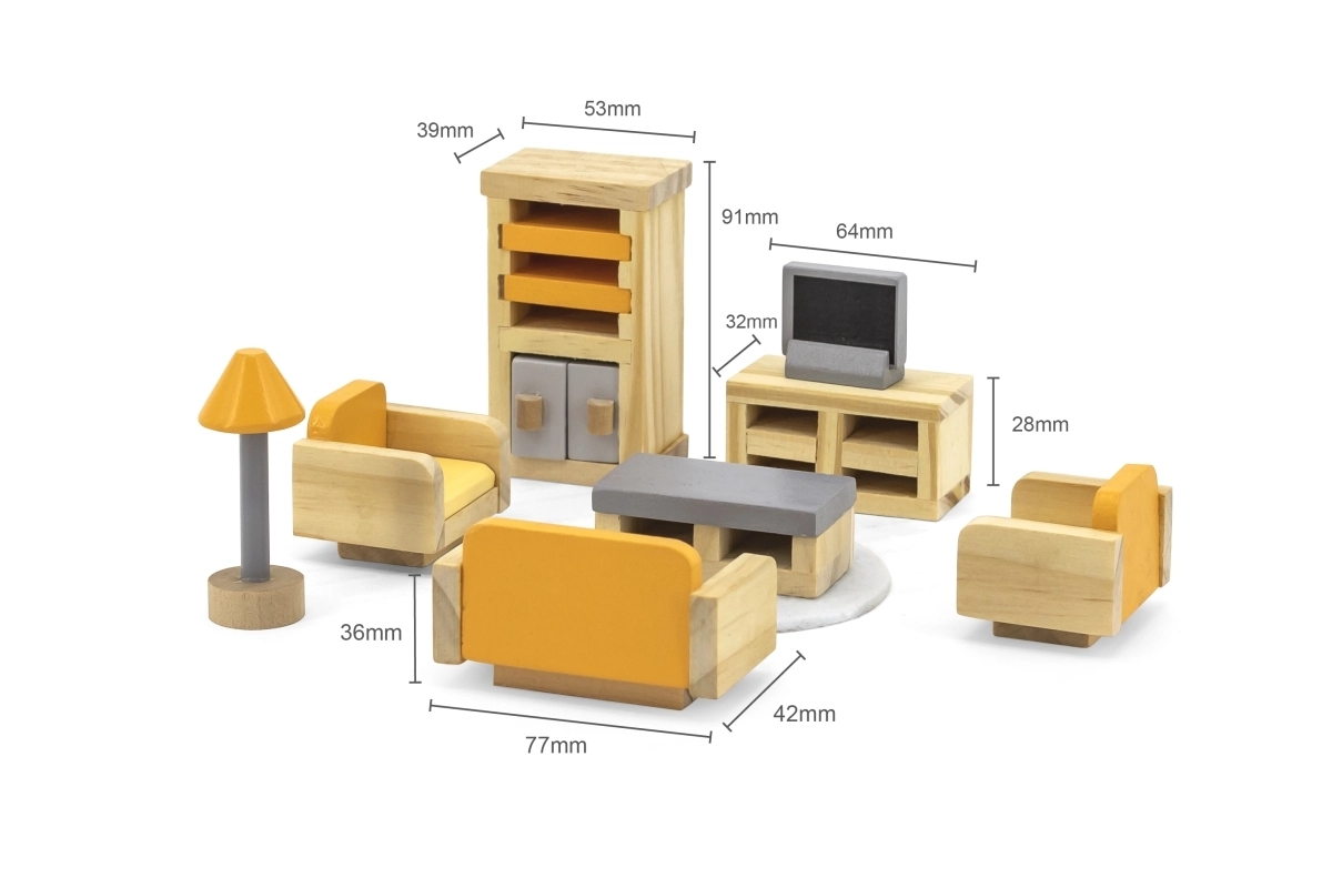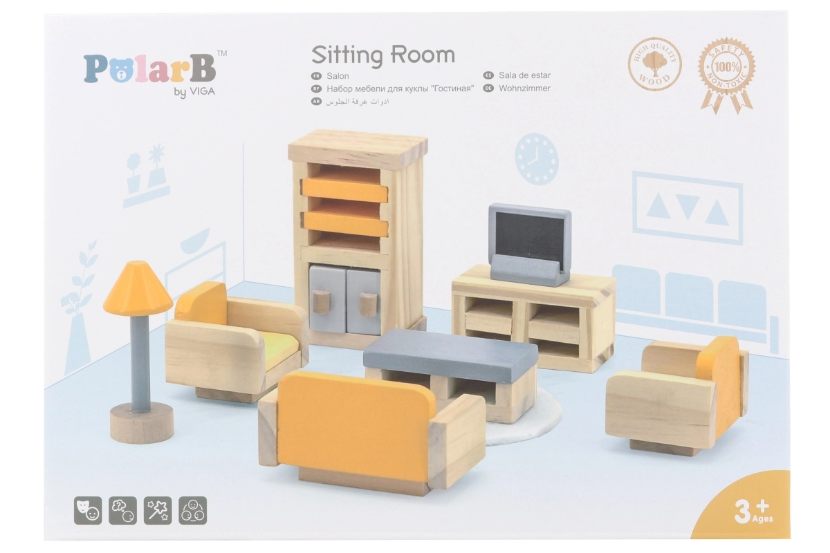 Koka mēbeles leļļu namiņam no zīmola PolarB piedāvā radošas rotaļas bērniem. Izgatavotas no augstas kvalitātes materiāla un krāsotas ar netoksiskām krāsām drošai spēlēšanai.