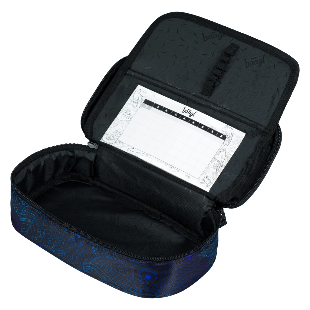 Tekstila penālis ar zilu mandalu rakstu piešķir estētisku akcentu, kas patiks stilīgiem skolēniem.