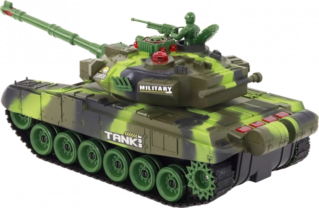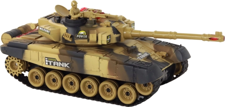 Divi reālistiski RC tanki ar infrasarkano kaujas sistēmu nodrošina aizraujošu, dinamisku izklaidi diviem spēlētājiem. Katram tankam ir 44 cm garums, pagriežama tornīša kustība 300° leņķī, gumijas kāpurķēdes lieliskai saķerei un 2.4 GHz vadība bez traucējumiem. Dzīvību sistēma ar četriem indikatoriem, skaņas efekti motoram un šaušanai, ātrums līdz 7–8 km/h un bagātīgs aprīkojums, ieskaitot akumulatorus un lādētājus, garantē reālistisku kauju un ilgu darbību.