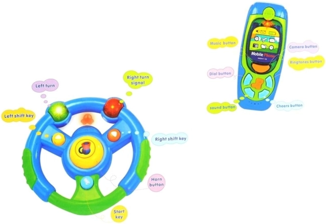 Telefonam ir vienkārša vadība ar lielām pogām, kas, nospiežot, aktivizē dažādas skaņas un melodijas. Gaismas efekti piešķir papildu pievilcību.