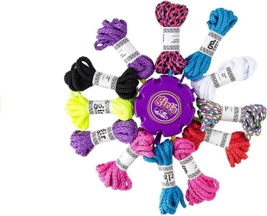 Komplektā ir 12 dažādu krāsu auklas, kas ļauj veidot košas aproces pēc jūsu fantāzijas.