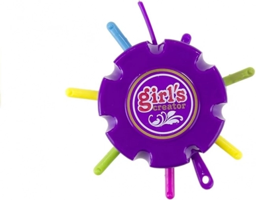 Komplektā iekļauta apaļa ierīce, kas atvieglo aproču pīšanu un palīdz veidot sarežģītus rakstus.