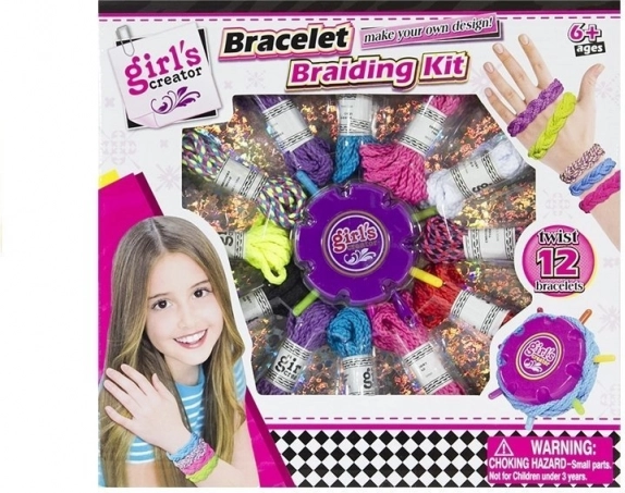 Komplektā ietilpst 12 košas auklas, auklas diametrs ir aptuveni 0,5 cm. Katra no tām der aproču vai bizeņu veidošanai. Turklāt iepakojumā ir ierīce, kas atvieglo pīšanu un aproču izgatavošanu.