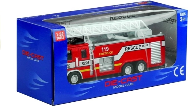 Miniatūrs modelis mērogā 1:32 piedāvā reālistiskas detaļas, kas līdzinās īstam ugunsdzēsēju auto.